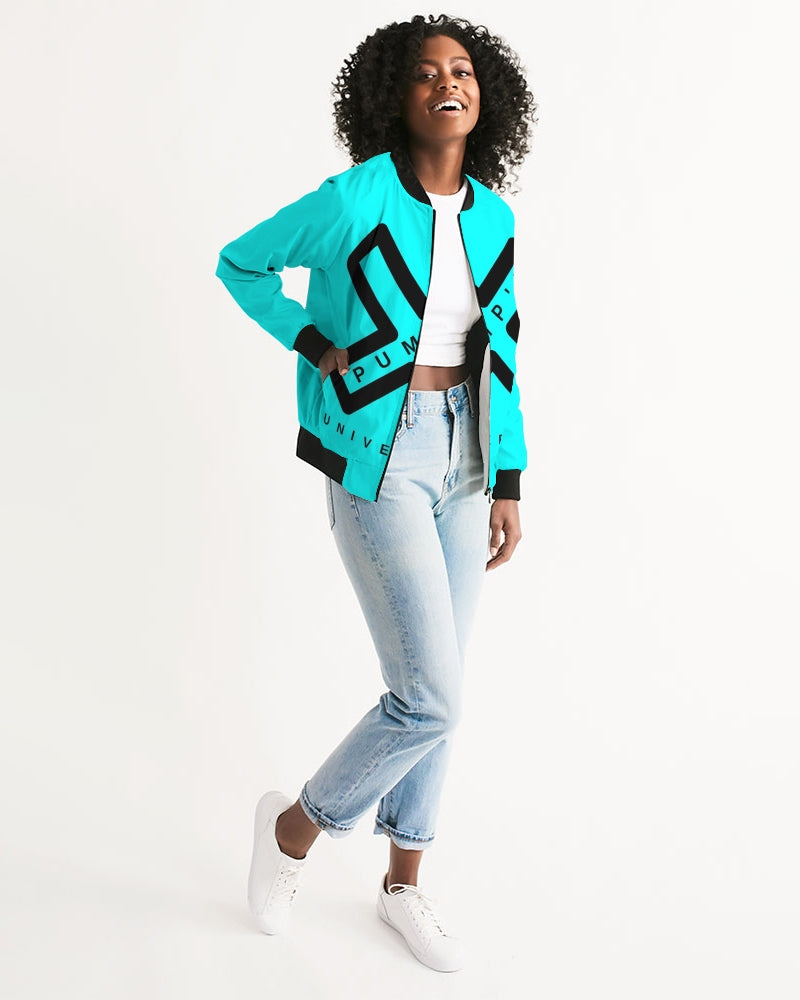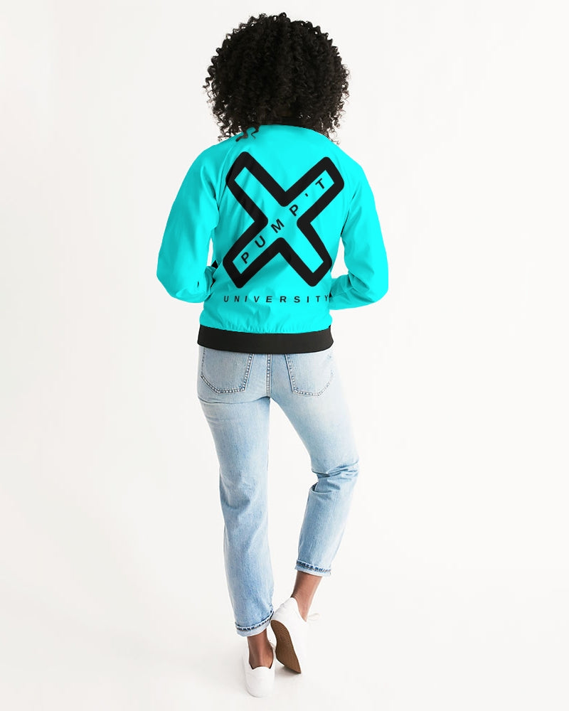 About The ArtPUMP'T UNIVERSITY LOGO 'X' THE PUMP'T LOGO'S 'X' REPRESENTS CROSSTRAINING BETWEEN THE TWO WORLDS OF DANCE AND PHYSICAL EXERCISE, EXPLORING SENSUALITY, AND TRANSFORMATION BETWEEN THE OLD YOU AND THE NEW PROGRESSED YOU. 'X' OUT ALL YOUR INHIBITIONS AND #GETPUMPT FOR A NEWER, FITTER, SEXIER, MORE CONFIDENT ( & MOST OF ALL) HEALTHY YOU! Product DetailsHand-cut and crafted with care, your custom designed Women's Bomber Jacket will set off any look! Its lightweight, airy fabric is lined with the perfect amount of insulation for the chillier months making this a great year round go-to.